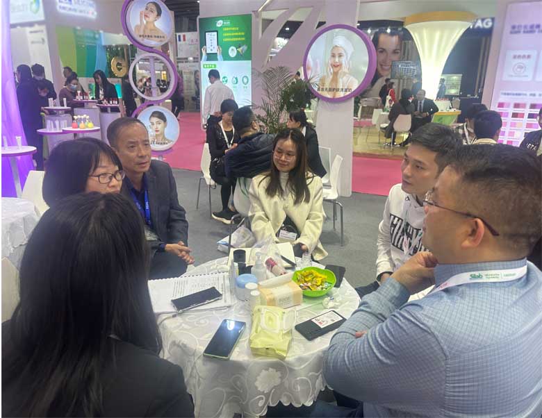 为美而聚,春风再起聚羊城。2月15日-17日为期3天的2023PCHi中国国际化妆品个人及家庭护理用品原料展览会在中国进出口商品交易会展馆(广州琶洲广交会展馆)正式落下帷幕。作为国内化妆品、个人及家庭护理行业的一项盛会,本次展会吸引了众多业内人士参展。此次我司的展会之行不仅仅是原料和技术的展示,更重要的是感知市场需要、精准了解客户的需求。