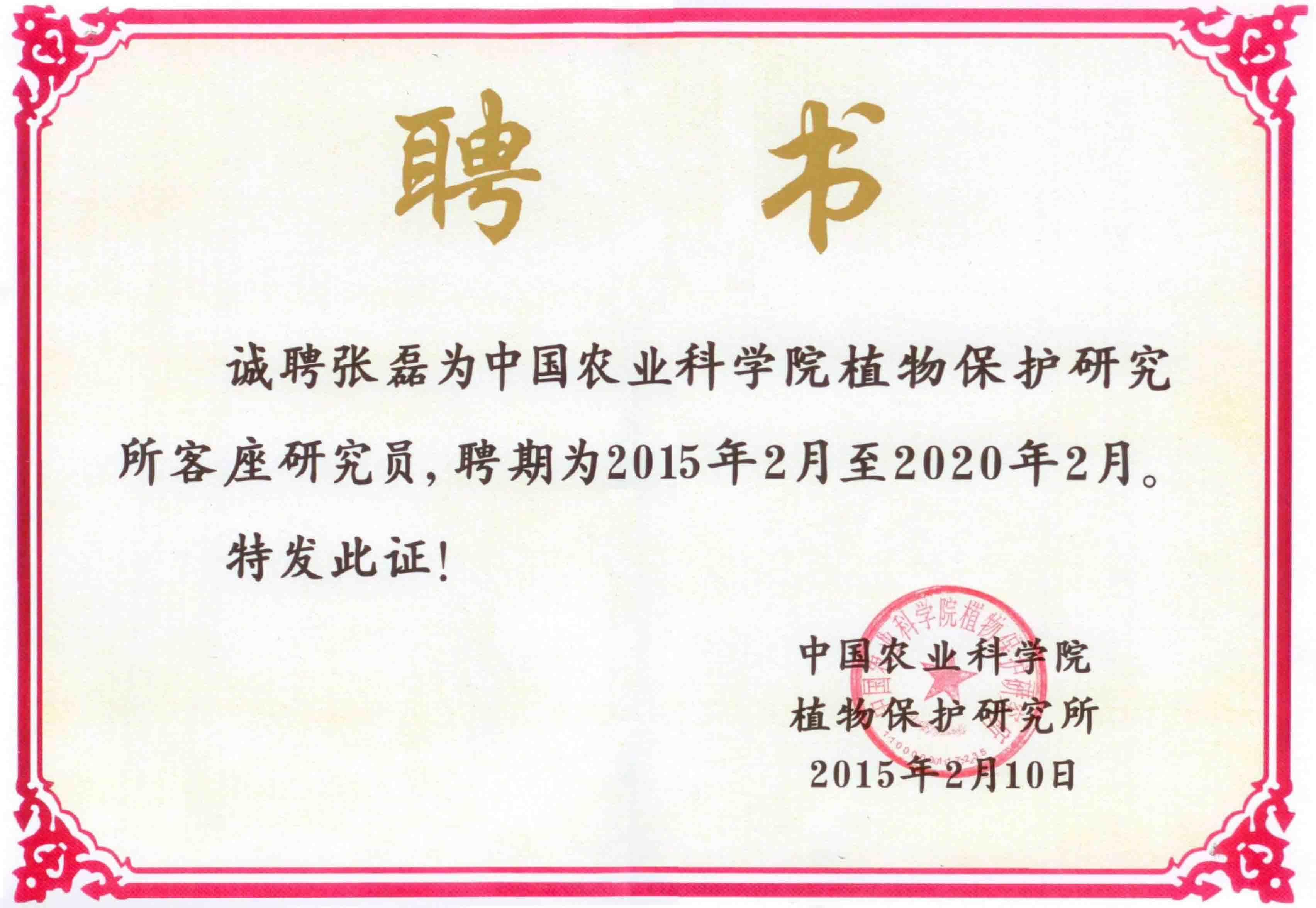 2015年2月10日,我司张磊董事长很荣幸地被聘为中国农业科学院植物保护研究所客座研究员。这是中国农科院植保所建所以来唯一的一个客座研究员,也是在郑永权常务副所长带队来我司考察和交流后,对我司及张磊董事长本人在科研技术、科研成果以及科研能力等方面的肯定,也是希望我司研发的环保型高分子乳化剂能在植保制剂行业得到广泛应用和发展,为植保制剂行业做出贡献。